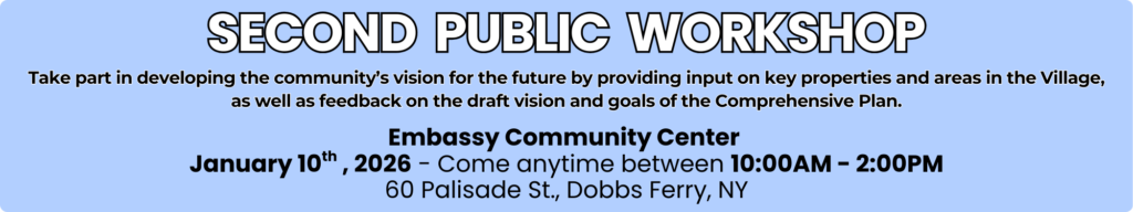Thank you for taking the time to learn about Dobbs Ferry’s Comprehensive Plan process! Your input is an important part of this process. Please check this website again for future updates and more opportunities to participate.