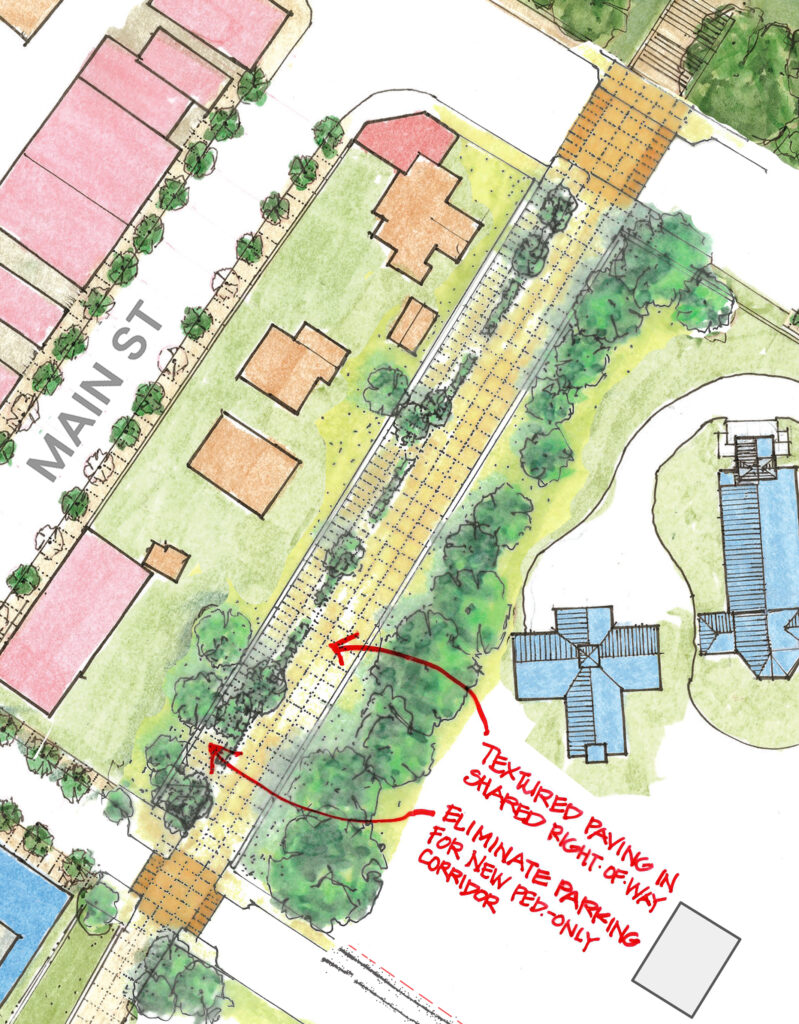 12 B. Shared space for cars and pedestrians along OCA right-of-way